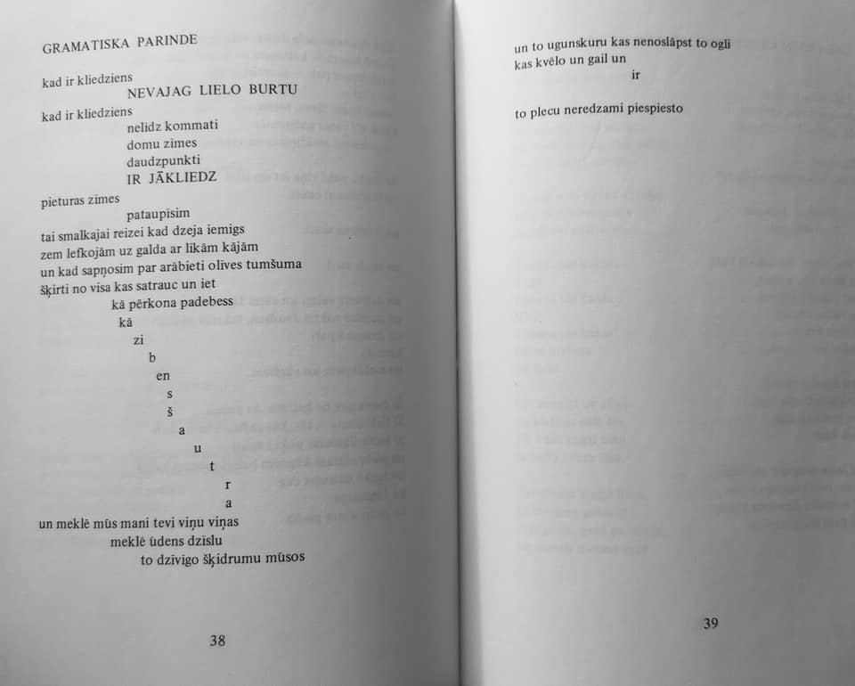 Savukārt dzeja – vārdos skopa, taču izceļas ar grafisko ietērpu. Dzejoļu vārdi, salikti pa vienam diagonāli pār balto lapu, vai līdzīgi smilšu pulkstenim, no platāka sākuma uz šauru “vidukli”, uz beigām dzejolim atkal ļaujot izplesties tai pašā platumā kā sākumam, atstāj gluži citu iespaidu kā smuki sarindotie. Irbem iznāca trīs dzejoļu krājumi latviešu valodā un viens zviedriski – tas ir 1976. gadā iznākušais “Född i f d svenska Lifland” (“Dzimis bijušajā zviedru Livonijā”).
