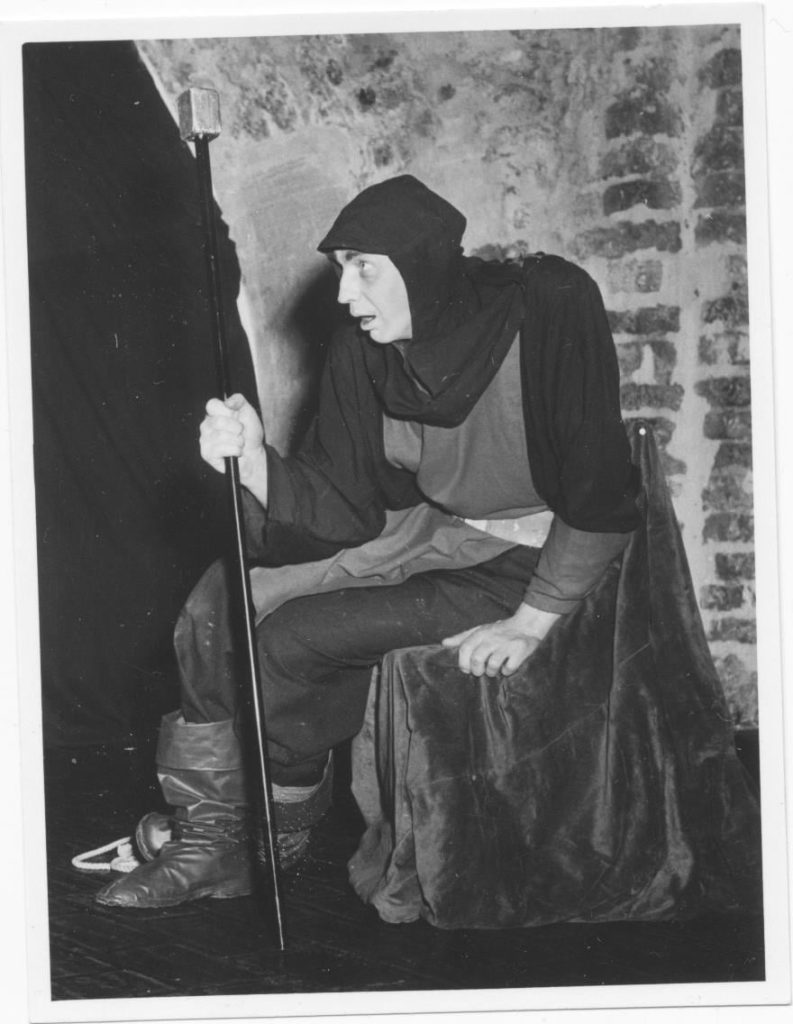 Artūrs Strautmanis bendes lomā Mārtiņa Zīverta lugā “Smilšu tornis”, 1955. gads. Foto Fricis Forstmanis.