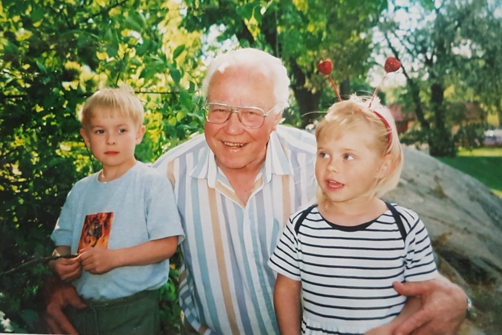 Noldis Millers ar mazbērniem Laimu un Henriku, pikniks pēc Stokholmas latviešu skolas noslēguma 2003. g.