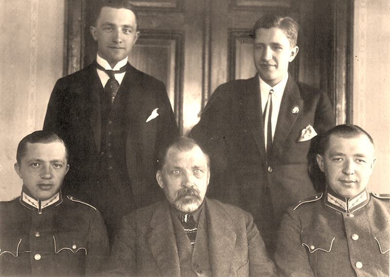 Krišjānis Tepfers ar četriem dēliem. Blakus tēvam armijas formās – Verners (no kreisās) un Herberts. Aizmugurē stāv brāļi diplomāts Jānis (no kreisās) un ārsts Ilmārs.